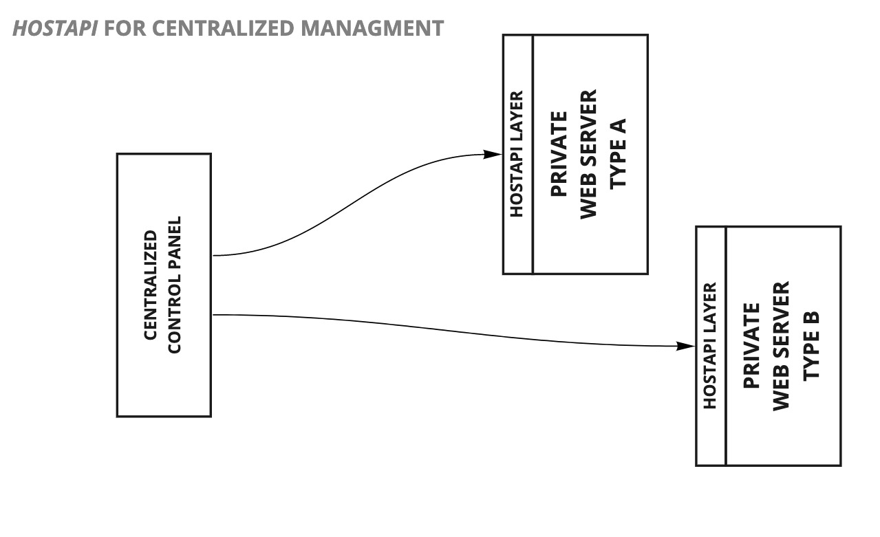 Hostapi is a standard which can be adopted by hosting panel producers for products like Plesk, cPanel, ispConfig to help providers building integration between heterogeneous and multi-manufacturer systems.